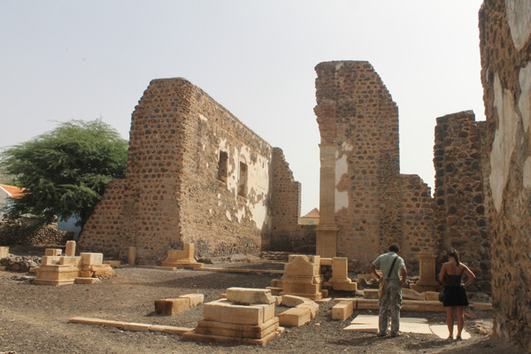 devant d'anciennes stèles.