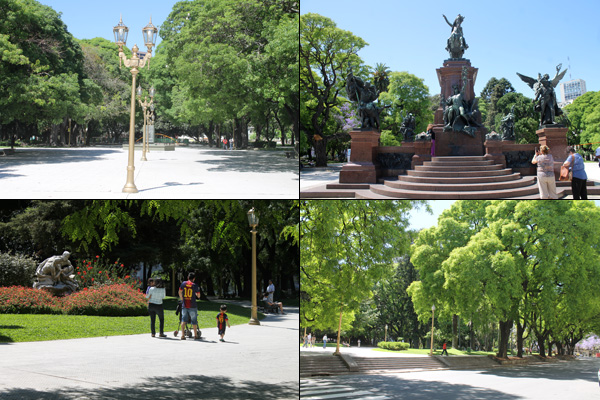 "Le General San Martin" sur son cheval. Papa et fiston aiment bien s'habiller de la même façon. la rangée des beaux lampadaires.