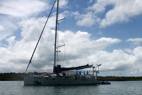 un voilier à l'ancre.