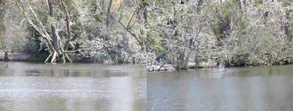 Les arbres qui entourent le lac sont blancs de leurs excréments.