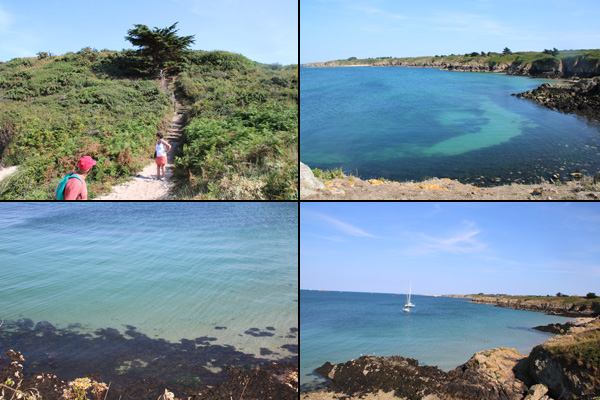 Eh oui parfois on monte. Une photo pour admirer la transparence de l'eau. Une autre d'un peu plus près. Quelques voiliers, venus passer l'après-midi, préfèrent le calme d'une petite crique au tumulte de l'autre baie.