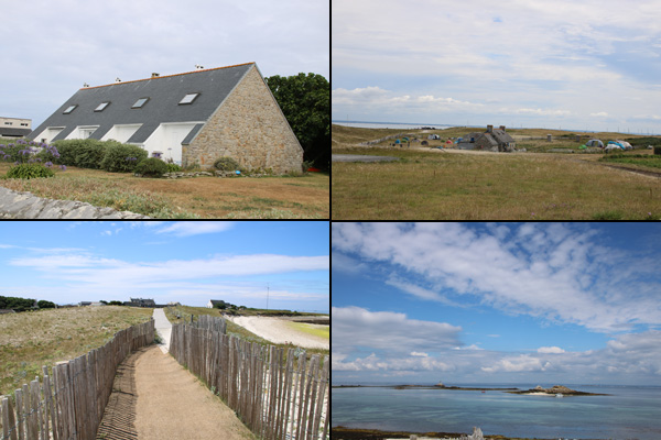 Nous sommes allés faire un tour sur l'île St-Nicolas. Il y a un petit camping. Parfois le chemin est recouvert d'un voile. Certainement pour empêcher le sable de voler.