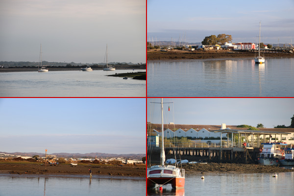 Et maintenant nous sommes à marée três basse. Arriver à l'école de voile ou partir pour la Ilha Tavira semble bien difficile. Le cata ne bougera plus