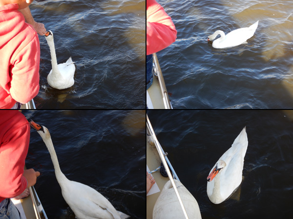 Puis on s'enhardit. On lui donne de la main. Il remue la queue de contentement, ce qui fait bien rire les enfants. Il en réclame d'autre en allongeant son cou. Mais non la fête est finie.