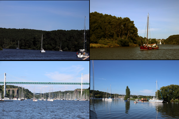 On circule beaucoup sur l'eau. Un vieux gréement. La Roche Bernard et son célèbre pont. Folleux.