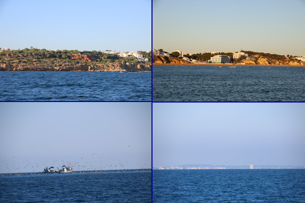 Les mouettes sont toujours là lorsqu'on nourrit les poissons dans les bassins. Sur la dernière photo on aperçoit la côte espagnole avec ses immeubles. Quel contraste avec le Portugal!!!
